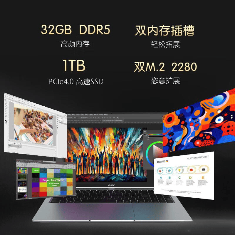拥有16G内存与1T高速固态硬盘◈✿◈,完美应对大文件的存储与快速读写◈✿◈,保证系统流畅运行◈✿◈。此设计尤为适合大学生和职场专业人士◈✿◈,确保高效学习与工作的体验◈✿◈。